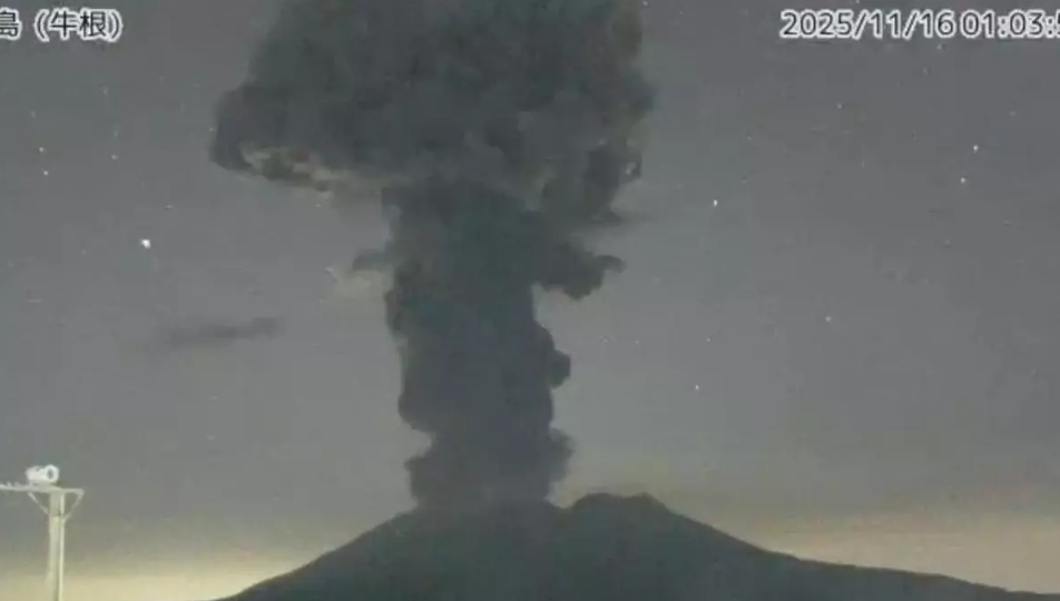 El volcán Sakurajima, ubicado en la prefectura de Kagoshima, al suroeste de Japón, entró en erupción en la madrugada del domingo 16 de noviembre de 2025. A las 00:57 (hora local), se registró una explosión desde el cráter Minamidake, y la columna de ceniza y humo alcanzó unos 4.400 metros sobre el borde del cráter, según informó la Agencia Meteorológica de Japón (JMA).