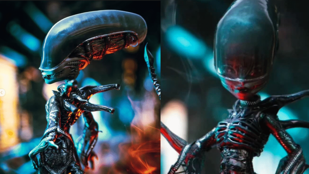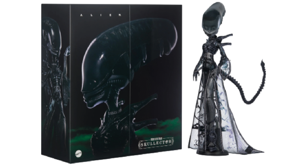Mattel ha lanzado una versión única de su línea Skullector, inspirada en el aterrador xenomorfo de la saga Alien. Esta muñeca de 28 cm (11 pulgadas) presenta una escultura detallada con una cabeza alargada y una cola flexible, fusionando elementos del cine de terror con la estética fashion de Monster High. Su vestimenta incluye un vestido negro translúcido con detalles inspirados en el exoesqueleto del xenomorfo, un tocado que evoca el cráneo alargado y un bodysuit con textura de piel alienígena. Los tacones de la muñeca recrean la apariencia del «Facehugger», una de las criaturas más emblemáticas de la franquicia Alien.